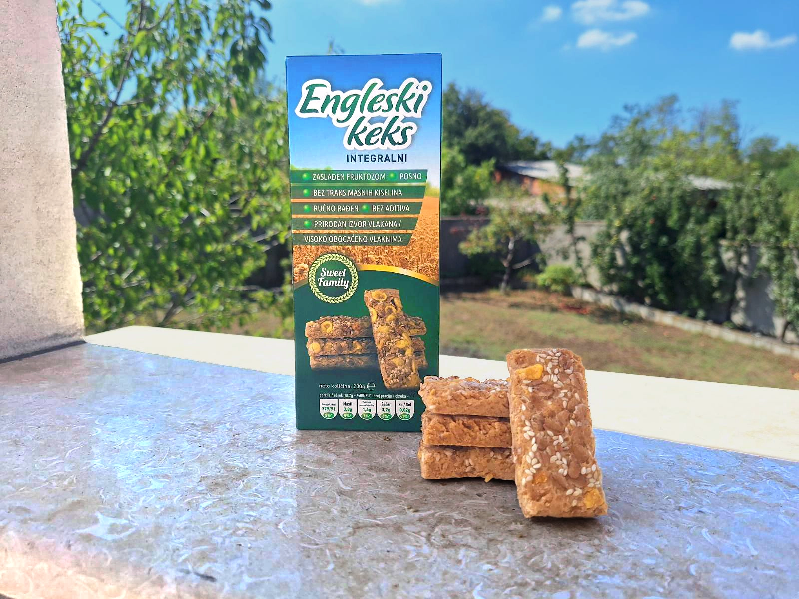 Engleski keks kombinuje jednostavne i proverene sastojke koji mu daju bogat, a istovremeno lagan karakter. Pšenično i integralno brašno stvaraju punu teksturu, dok pšenične i kukuruzne pahuljice (po 4%) donose prijatnu hrskavost.